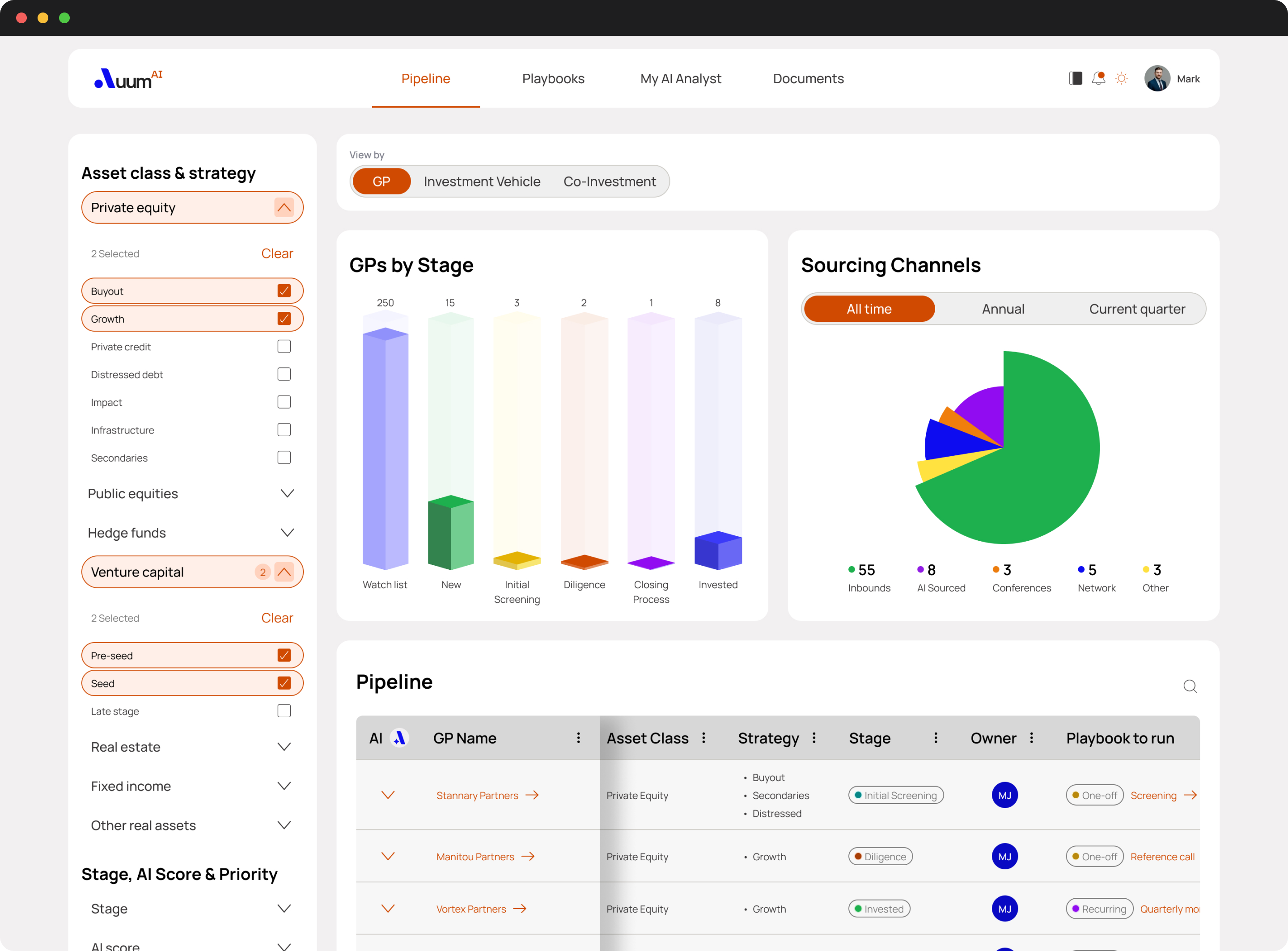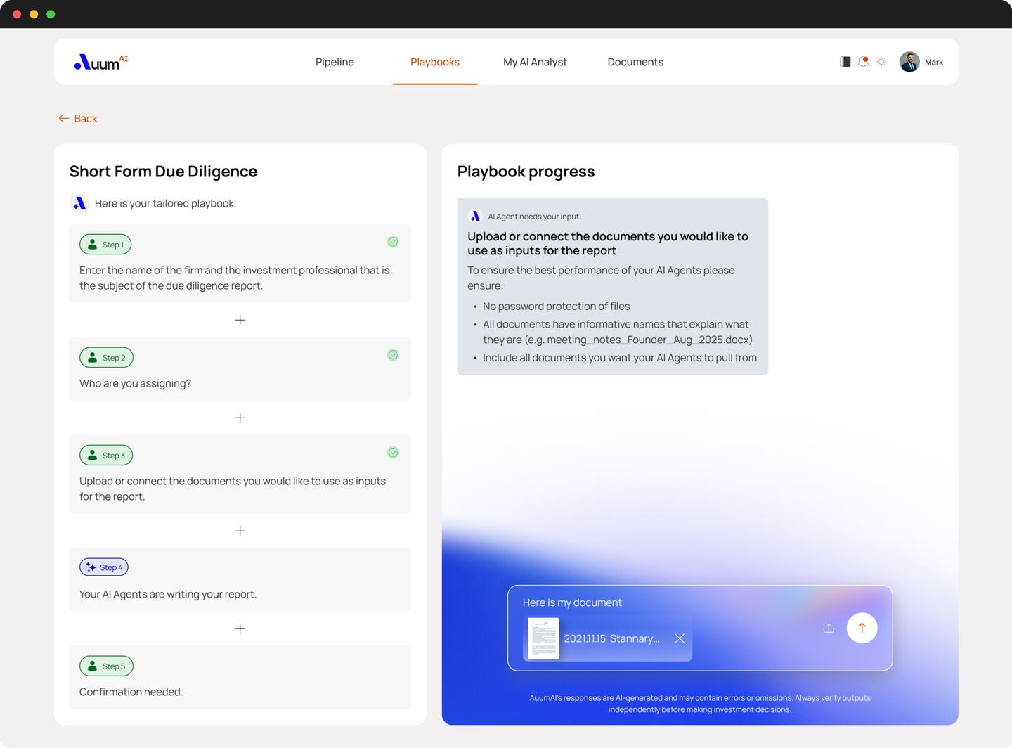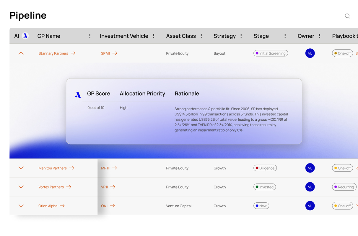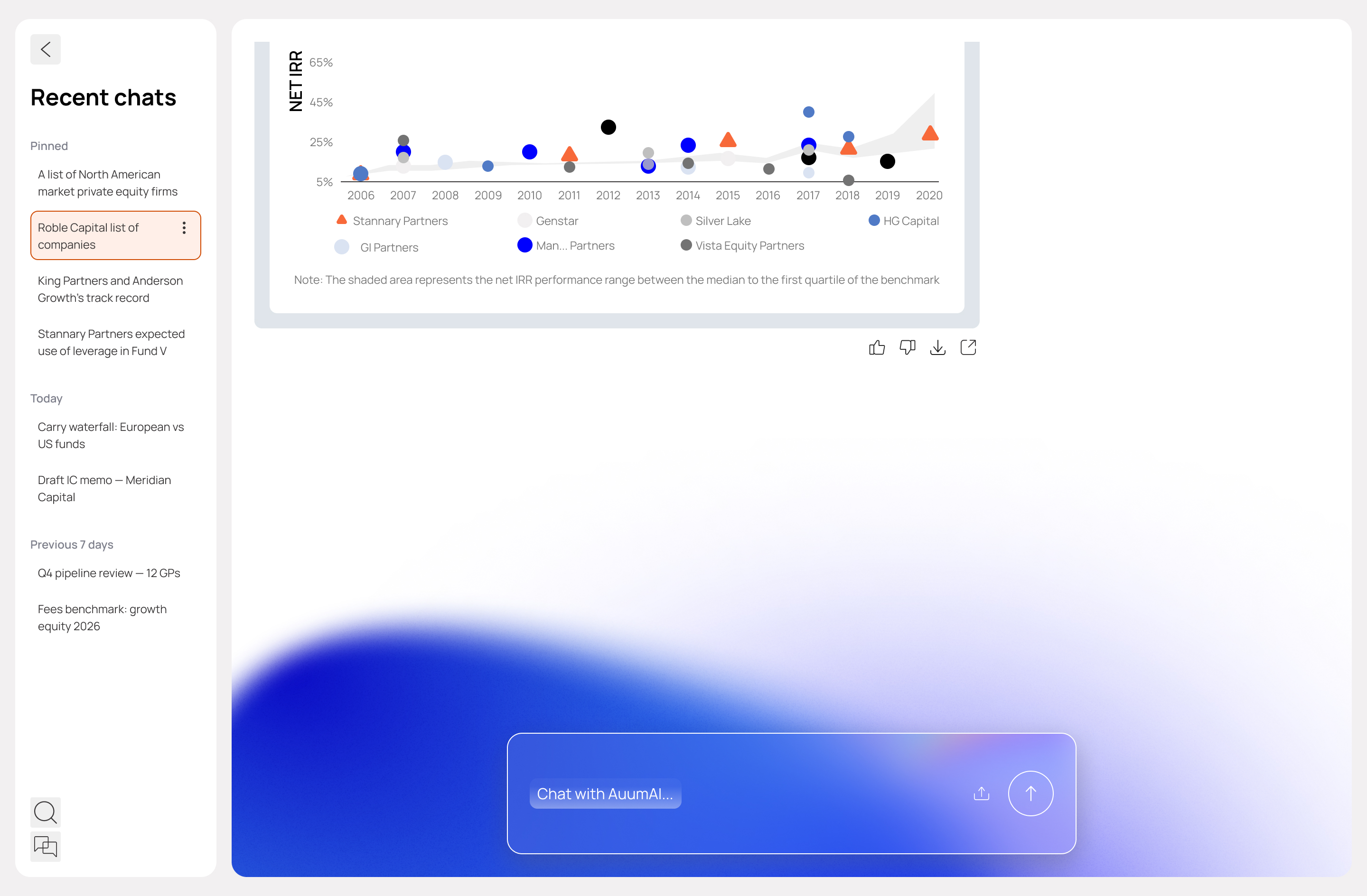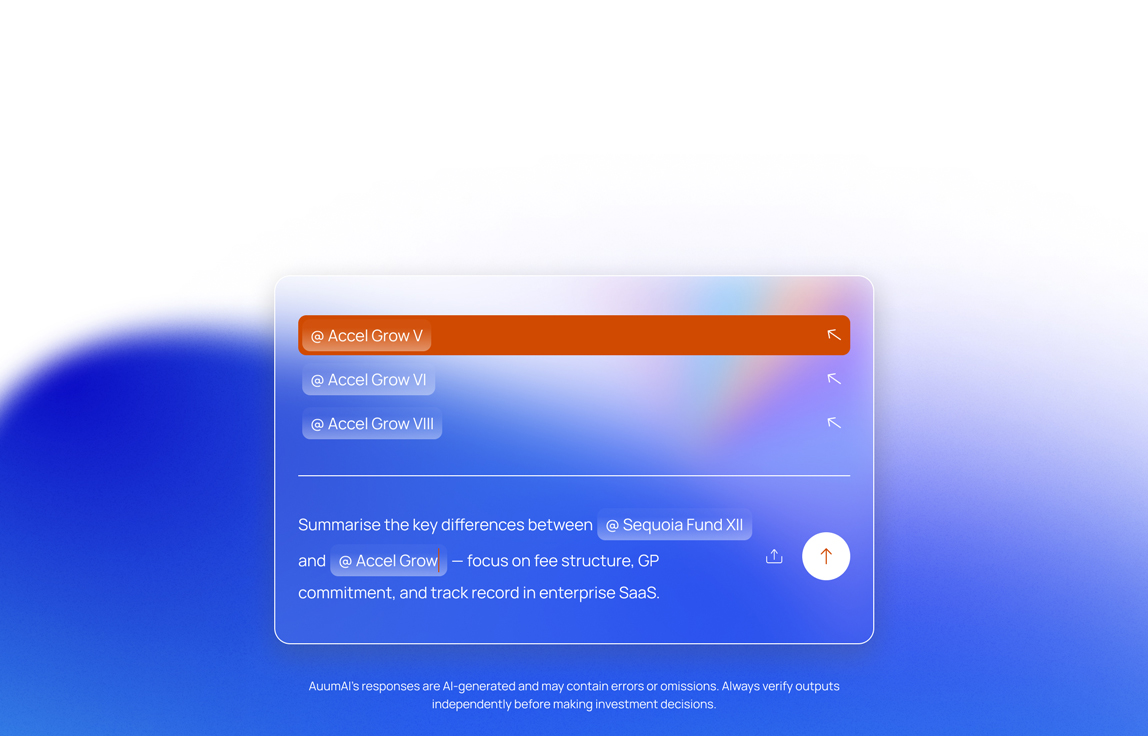 Every number in an AuumAI response is bound to the document it came from — GP Score, rationale, paragraph, retrieval timestamp. Click a figure, open the proof. Compliance teams don't ask where the 18% IRR came from; they click on it.