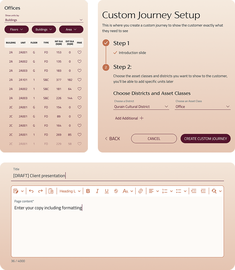 - Elevate the Storytelling Experience: Create an elegant, intuitive, and visually stunning iPad interface that allows sales representatives to effortlessly navigate the Diriyah vision, location, and history, transforming a complex masterplan into a compelling narrative for the client.