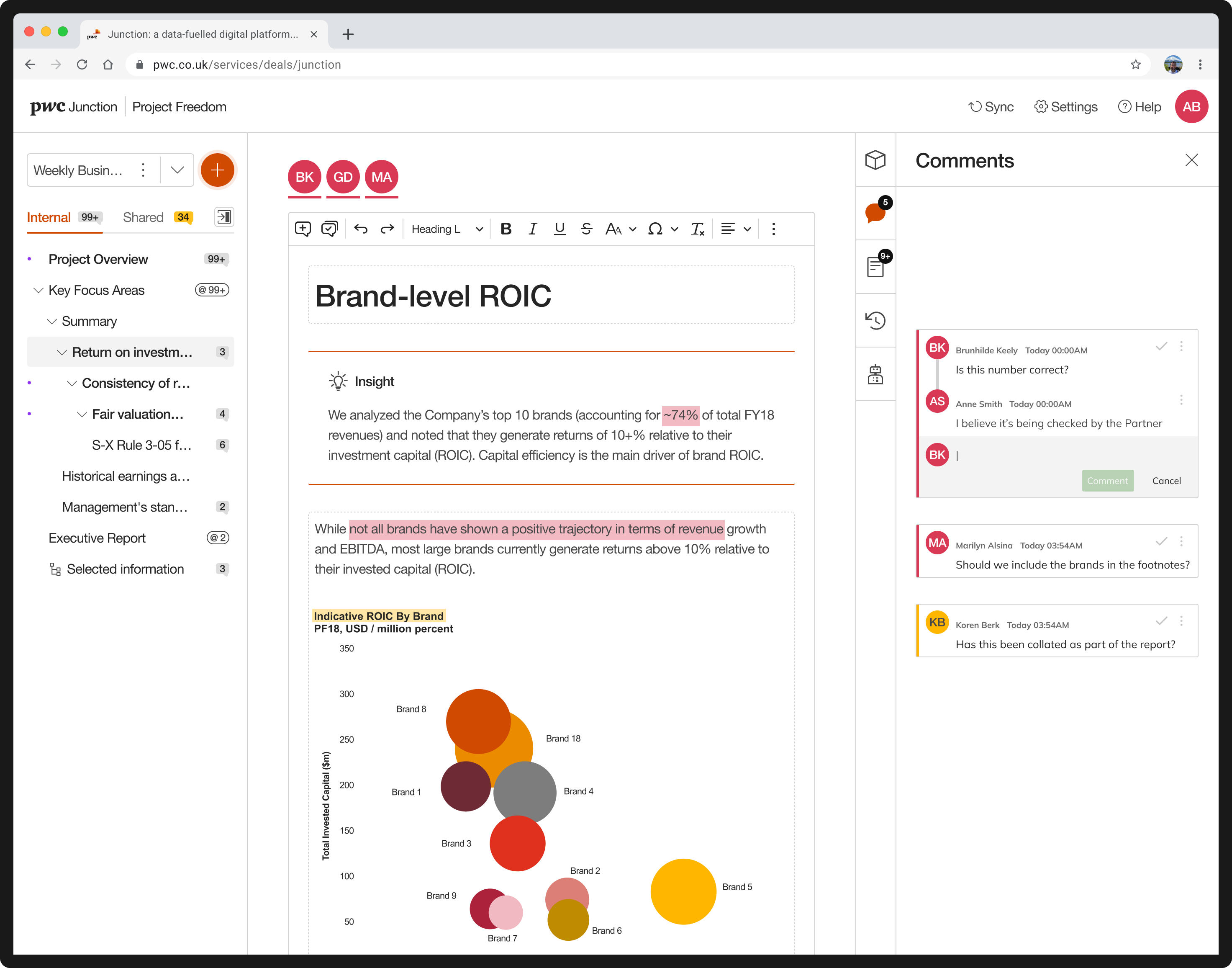 As a PwC user of Junction, I need to be able to view, edit, and comment on the content within a page, so that I can build the content required for my project