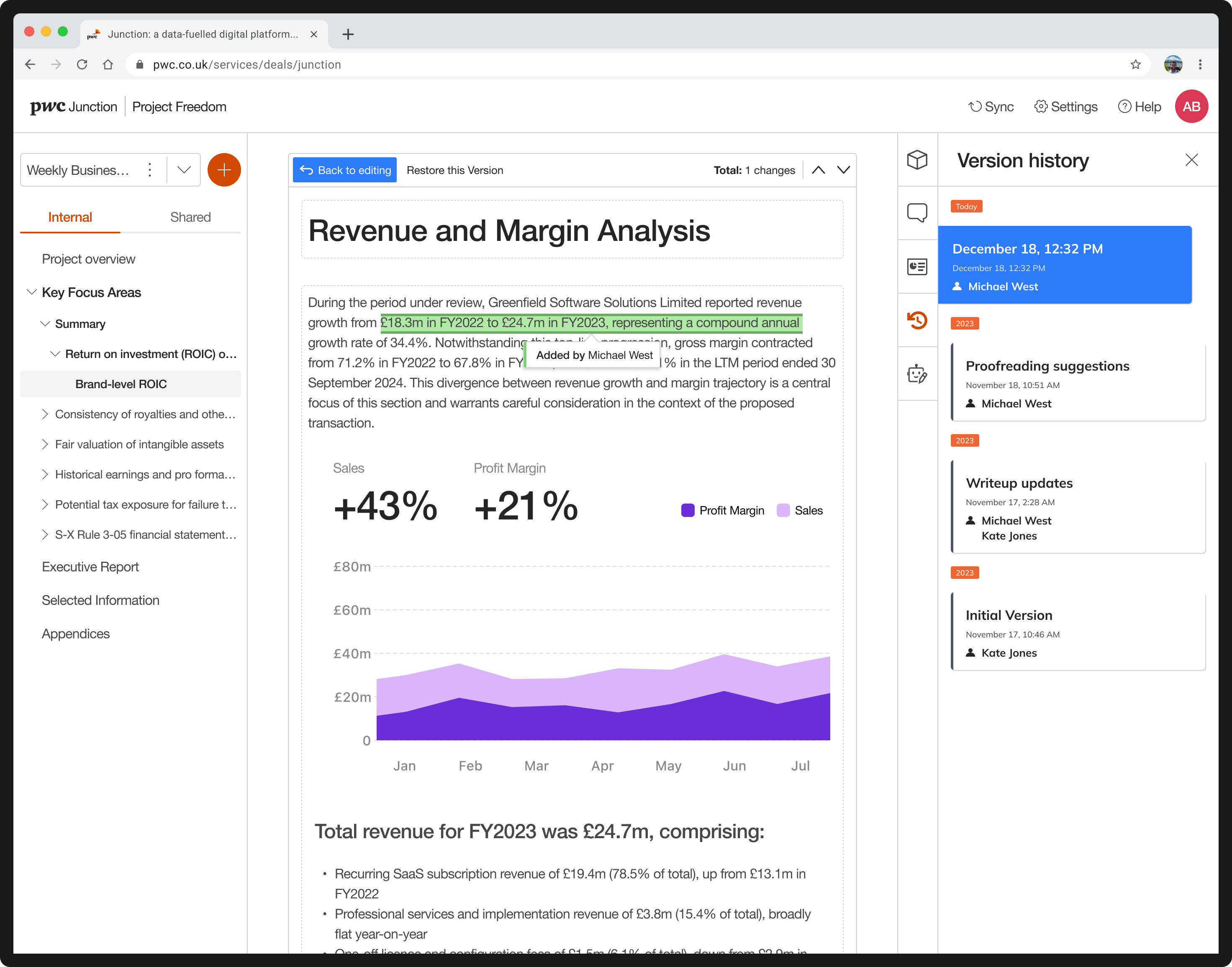 As an External Audit Reviewer, I need a complete, time-stamped version history of every analysis so I can trace how conclusions evolved across the engagement andverify no material changes were made post sign-off.